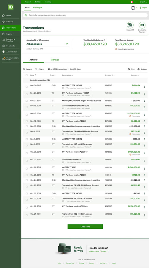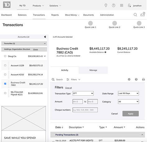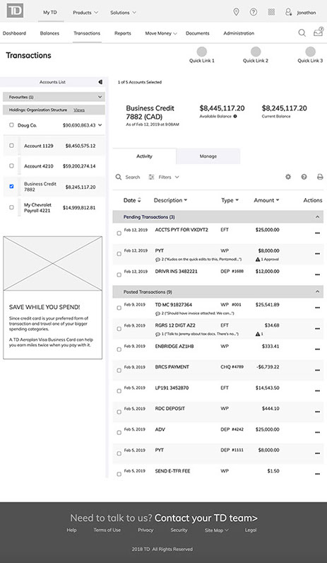 The in person testing was conducted in TD user testing facilities. The results were compiled into a report that was presented to the stakeholders. These results helped a lot in shaping the business banking future state.
